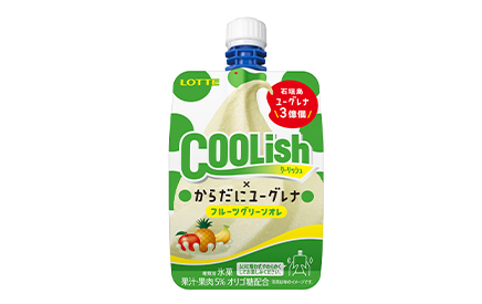 ~フルーツグリーンオレ~」「からだにユーグレナ フルーツグリーンオレ」の味をイメージし、開発しました。ミックスフルーツ味で飲みやすいだけでなく、「クーリッシュ」の特長である小さな氷(微細氷)と混ぜ合わせることですっきりとした味わいに徹底的にこだわりました。また、石垣島ユーグレナを3億個、オリゴ糖を1900mg配合しました。