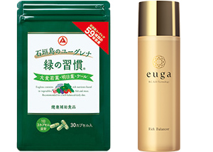 ミドリ麹 微細藻類ユーグレナと麹(こうじ)から開発したユーグレナ社独自の自然素材です。一般的な麹と比べて「高い酵素力価」と「エルゴチオネイン高含有」を特徴としています。