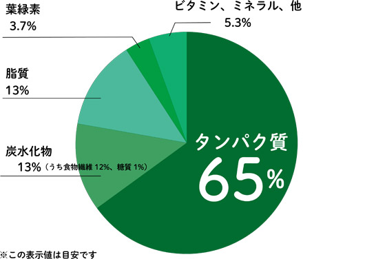 植物性のプランクトンであるクロレラには、タンパク質が豊富に含まれているため、必須アミノ酸をバランスよく摂取できます。他にもビタミン、ミネラル、カロテノイド、不飽和脂肪酸、葉緑素(クロロフィル)など豊富な種類の栄養素を持っています。