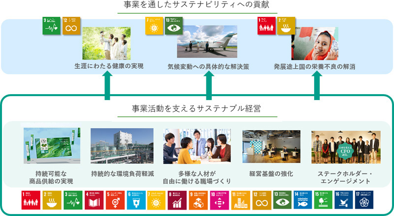 また私たちは、事業活動そのものが、私たちの住む地球環境やあらゆる人に支えられていることを認識しています。私たちの事業を支える人々や地域社会、地球も幸せであり続けるための経営のあり方を常に考えながら、サステナブルな世界をめざしていきたいと考えています。