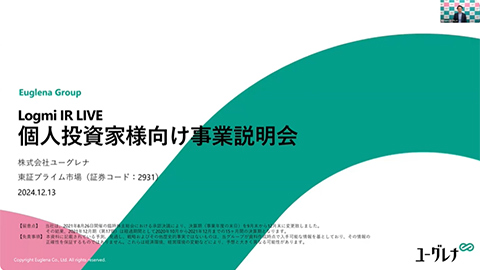 会場:株式会社ユーグレナ東京本社(オンライン配信)