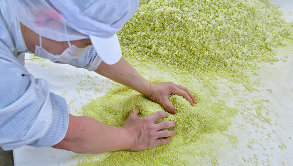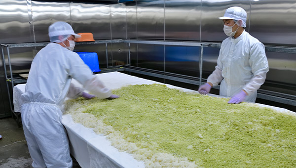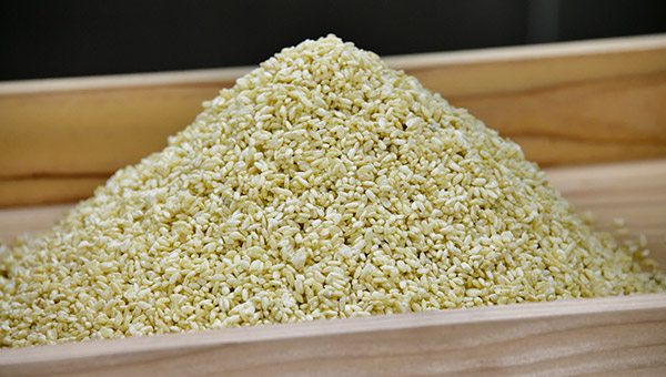 日本におよそ10社ほどしかいない種麹屋の中で、今でも手作りで麹を作っています。同社はAOK-139と呼ばれる高性能種麹の育種にも成功しており、ミドリ麹は種麹としてAOK-139株を、お米は100%国産米を使用しています。