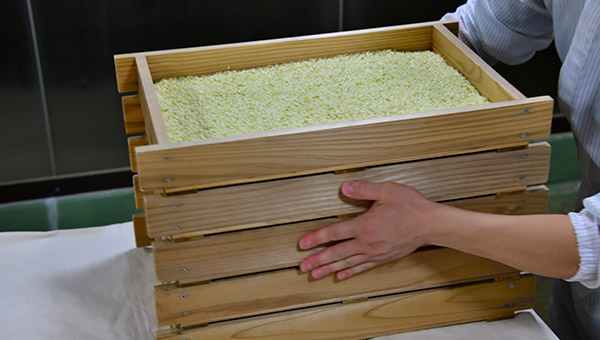 • 4.一日置いた蒸し米を麴蓋に入れ、麹菌を育成させる