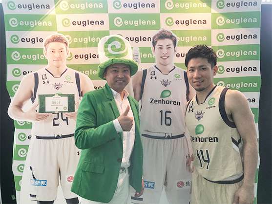 ユーグレナ社がスポンサーをする琉球ゴールデンキングスの試合などに現れ、