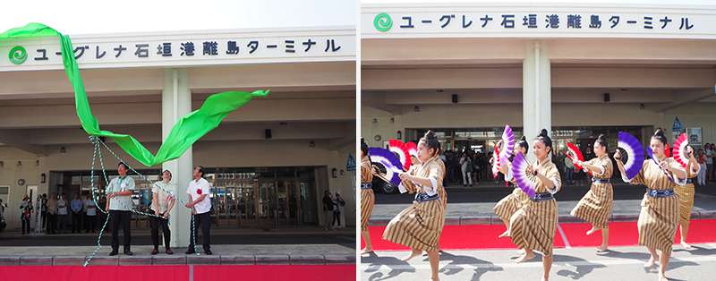 除幕式は、地元石垣島に感謝の気持ちを込めつつ、ユーグレナについて伝えるために、除幕の布を緑色にしたり、ミドリムシと泡盛のリキュール「緑酒」やユーグレナ入りサーターアンダギーを振舞ったりした。また、ターミナルの認知度をあげるために看板前で記念撮影できるような仕掛けや、ユーグレナ飲料専売自動販売機をターミナル内に設置した。