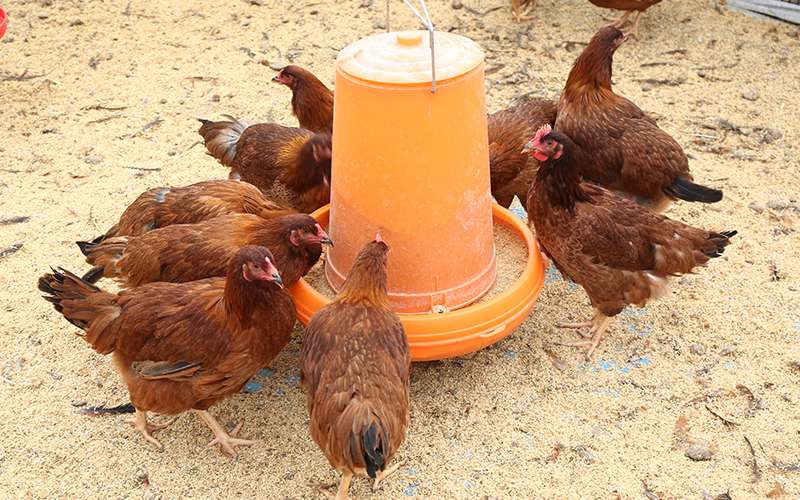 比内地鶏の飼料の摂餌行動を観察し、ユーグレナやクロレラの配合割合や給餌方法を調整する日々が続いた。