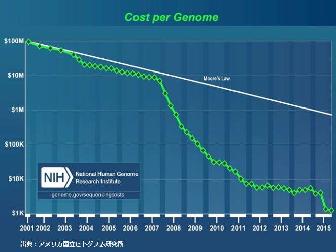 2001年に1億ドル(約100億円)かかったゲノム解読の費用が、