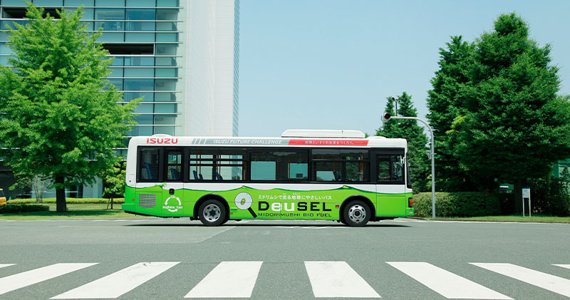 いすゞ自動車株式会社では、すでに2018年12月より藤沢工場シャトルバスにて微細藻類ユーグレナからつくったバイオディーゼル燃料の実証走行を開始していた。大手自動車会社で性能試験がなされたことは、インパクトがあったという。