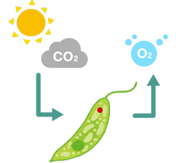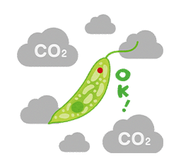 ユーグレナは培養時に農地を必要としないため農作物や土地との競合性が低く、かつ、光合成で成長するので化石燃料を消費して排出される二酸化炭素を吸収して育ち、炭素循環型社会を構築することができる可能性があるのです。