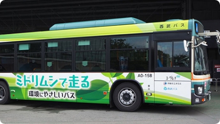 培養方法によって、体内により多くの良質な油を作ることができる微細藻類ユーグレナ。この油を抽出し、製造過程を経て、バイオ燃料へ。今後の大量生産に向け、現在でもすでにユーグレナを原料の一部としたバイオ燃料「サステオ」が、日本各地でバスやフェリー、飛行機など陸海空すべてのモビリティに導入されています。